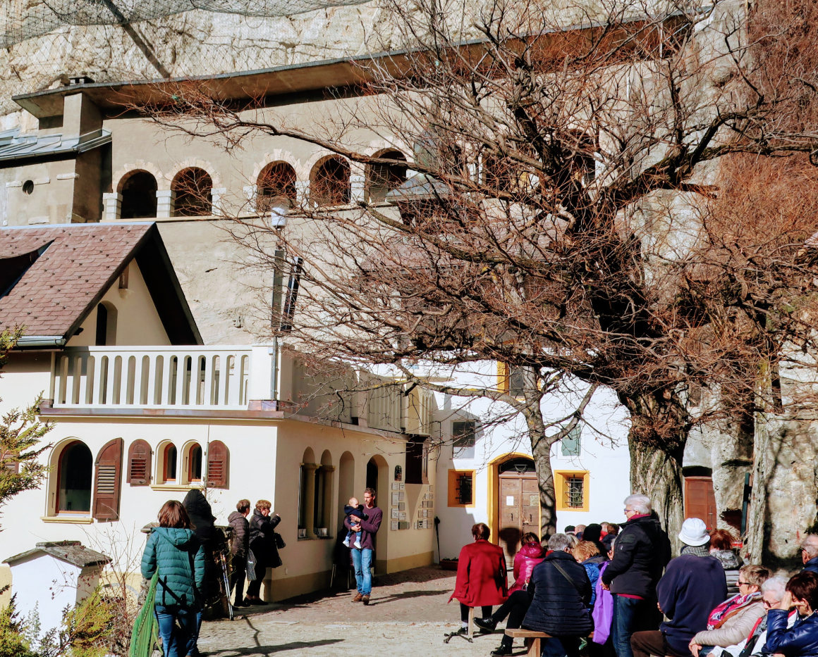 Ce double aspect du pèlerinage — extérieur, nous obligeant à quitter un lieu pour un autre, et intérieur, nous dépouillant du vieil homme pour revêtir le nouveau — nous pouvons le retrouver dans la célébration des « Sept vendredis de Longeborgne », destinés à vivifier et nourrir notre ferveur. Nous nous rapprochons alors de Marie pour recevoir d’elle les grâces de compassion, d’innocence et de charité découlant du sacrifice de son Fils, de l’« Heure » sublime de la Croix. Le pèlerinage est temporaire et transitoire : ce qui demeure, c’est le Royaume qui se construit en nous, dans la paroisse, dans la chrétienté, dans l’univers entier. Notre-Dame de Compassion nous accompagne jour après jour et demeure notre espérance jusqu’au tombeau où elle garde pour nous entre ses mains la grâce de la Résurrection.
